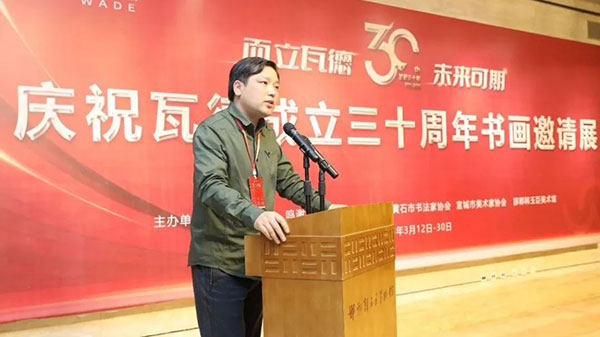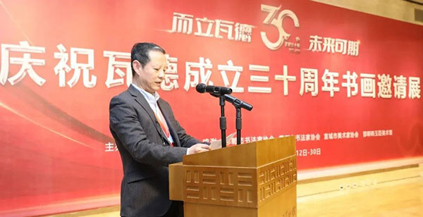 瓦德集團董事長謝富強向與會的各路藝術家及賓朋表達了熱情歡迎。向河北邯鄲、湖北黃石、安徽宣城三地文聯(lián)、書協(xié)、美協(xié)和書畫家們的大力支持表達了衷心感謝。尤其對中國知名書畫家,邯鄲市書協(xié)主席,文化名人,著名企業(yè)家韓玉臣先生對瓦德集團慶典活動的鼎力支持表達了深深的敬意和由衷地感謝。在三千年歷史的趙國都城邯鄲,能有瓦德集團如此注重文化藝術的實屬難得,能將深厚的中國文化的脈絡注入到自己的企業(yè)產(chǎn)品中非常難得。
